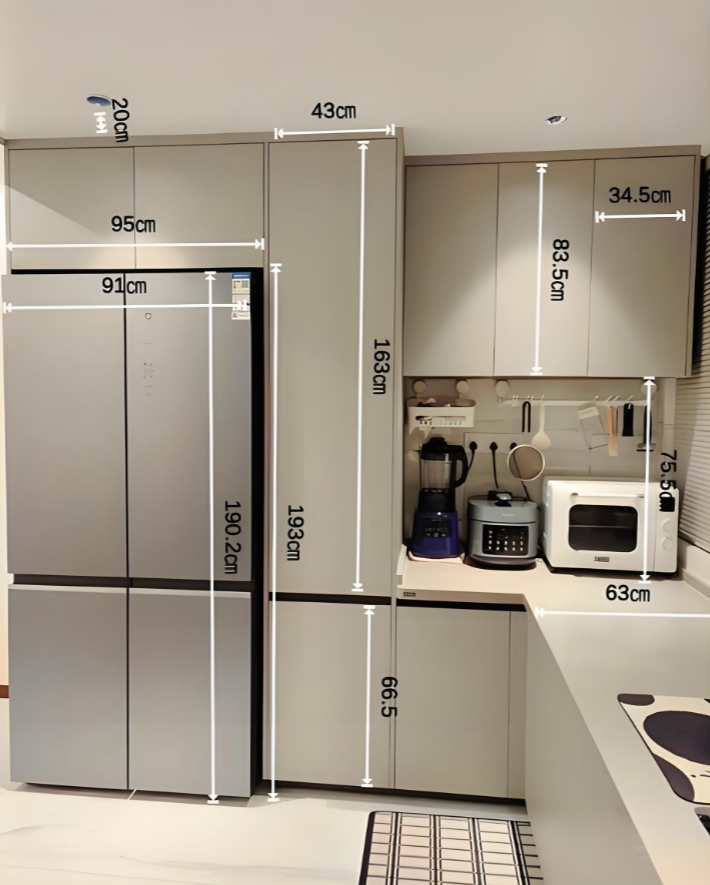 - 超薄嵌入:对于空间有限的厨房,超薄嵌入式冰箱(厚度≤60cm)能无缝融入橱柜,提升美观度。零嵌式设计仅需微小预留空间,便于清洁和维护。