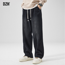 黑灰色牛仔裤男秋季宽松直筒长裤男生美式高街秋冬裤子男加绒加厚(58元)