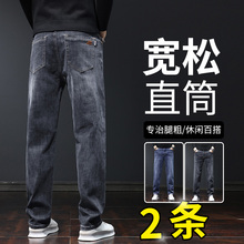 秋冬款宽松牛仔裤男休闲直筒大裤脚胖子肥佬弹力运动加肥加大码潮(59.9元)