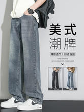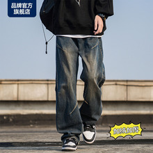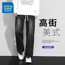 男士牛仔裤美式高街直筒宽松青少年潮牌春季新款复古水洗长裤子男(49.9元)