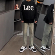 Kuvine秋冬季男士浅蓝色牛仔裤男款加绒美式复古宽松直筒休闲长裤(128元)