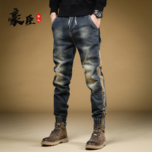 秋冬工装牛仔裤男款束脚加绒加厚复古弹力拼接潮牌冬季百搭高端(159元)