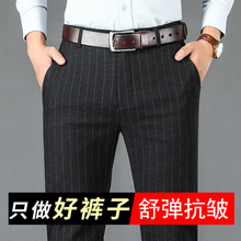 秋冬季西裤男士商务正装直筒休闲裤加厚新款条纹黑色加绒修身长裤(59元)