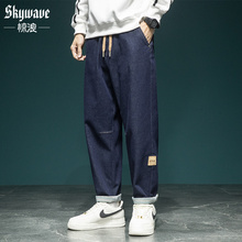 惊浪秋冬原色牛仔裤男宽松大码工装裤秋季直筒休闲裤松紧带锥形裤(128元)