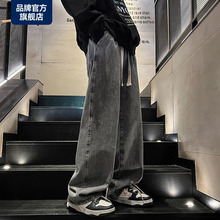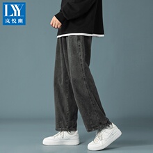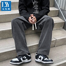 烟灰色牛仔裤男2024新款直筒宽松美式高街裤子秋冬潮牌痞帅阔腿裤(58元)
