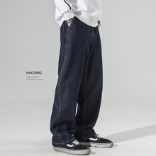 美式复古牛仔裤男士秋冬高街宽松阔腿加厚裤子潮牌直筒工装长裤(78元)