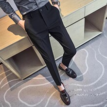 裤子男士2024新款黑色西裤男款秋冬款修身正装直筒加绒九分休闲裤(49.8元)