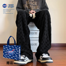 NASA官方格子条纹潮牌休闲裤男2024秋冬新款运动宽松阔腿痞帅长裤(168元)