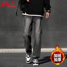 回力牛仔裤男士2024秋冬新款美式加绒阔腿裤子男宽松直筒休闲长裤(79.9元)