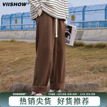 美式灯芯绒裤子男秋冬款加绒加厚垂感宽松直筒裤阔腿潮流休闲长裤(39.9元)