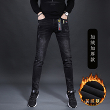 高端秋季黑色牛仔裤男款修身小脚裤弹力紧身男士冬季加绒加厚裤子(148元)