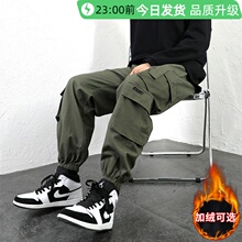 工装裤男秋冬款宽松束脚裤男生裤潮牌潮流九分裤子男士加绒休闲裤(79元)