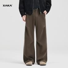 XAKA美式cleanfit褶皱垂感拖地休闲裤男高街伞兵宽松直筒咖色西裤(149.9元)