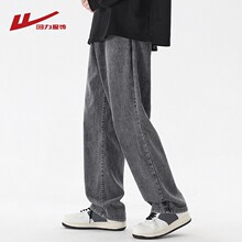 回力加绒加厚牛仔裤男士春秋冬季2024新款宽松男生直筒休闲长裤子(89.9元)
