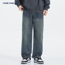 HomePanda秋冬季款阔腿加绒牛仔裤男宽松直筒美式复古水洗休闲裤(139.9元)