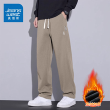 KZ真维斯直筒阔腿休闲长裤男士运动卫裤子宽松潮牌秋冬季加绒加厚(79元)