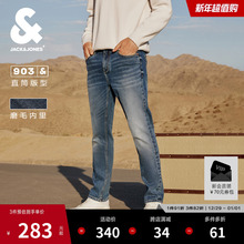 903直筒杰克琼斯秋季新款牛仔裤男士修身休闲磨毛保暖男裤子男装(340元)
