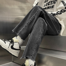 黑灰色毛边牛仔裤男潮牌vibe美式修身直筒裤秋季款2024年九分裤男(58元)