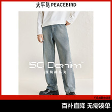 【美式复古】太平鸟男装水洗蓝色牛仔裤男春秋季新款直筒长裤潮(259元)