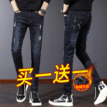 秋冬款牛仔裤男款2024新款加绒长裤子男士灰色弹力修身小脚裤冬季(69.9元)