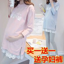 孕妇套装春秋冬季外穿中长款袖大码上衣T恤两件套加绒加厚孕妇装(29.9元)