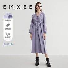 嫚熙孕妇装V领抽绳秋装2024新款连衣裙洋气时髦宽松遮肚不显怀裙(259.9元)