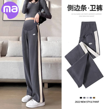 孕妇裤春秋季外穿侧边条阔腿裤秋冬加绒直筒托腹孕早期长裤孕妇装(68元)