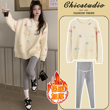 孕妇套装2024新款韩版加绒加厚上衣裤子休闲百搭减龄两件套春秋冬(148元)