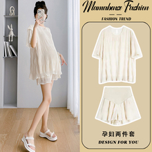 孕妇套装时尚洋气时髦短袖薄款肌理感上衣短裤两件套2024新款夏女(98元)