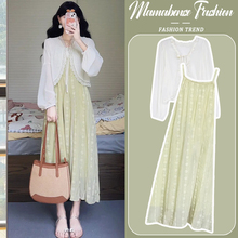 孕妇连衣裙套装春秋夏2024新款法式宽松薄款披肩显瘦吊带裙两件套(89元)