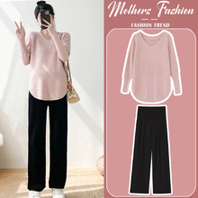 孕妇套装2024新款洋气宽松显瘦长袖V领针织衫上衣裤子春秋两件套(79元)