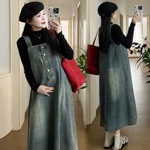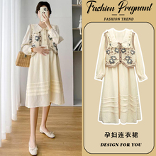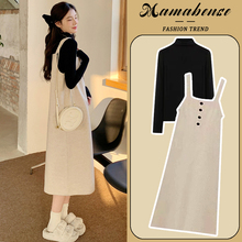 孕妇连衣裙两件套装时尚宽松显瘦中长款洋气背带裙2024新款春秋冬(148元)