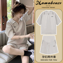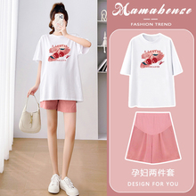 孕妇套装时尚洋气时髦夏短袖宽松休闲2024新款T恤上衣短裤两件套(49元)
