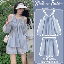孕妇套装时尚洋气时髦露肩薄款宽松上衣短裤两件套2024新款夏辣妈(116元)