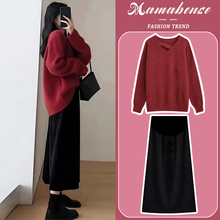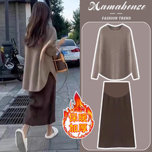 孕妇连衣裙两件套装时尚洋气时髦针织毛衣外套半身裙2024新款秋冬(148元)