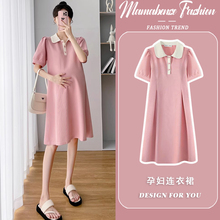 孕妇装夏天裙子中长款2024夏装新款翻领宽松粉色polo裙短袖连衣裙(89元)
