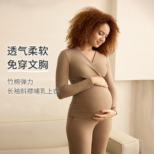 哺乳秋衣秋裤上衣孕妇打底衫保暖内衣秋冬款喂奶带胸垫月子服套装(55.9元)