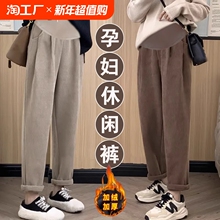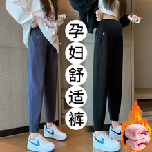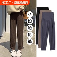 孕妇裤子大码哈伦裤秋冬外穿加绒加厚托腹小个子休闲直筒卫裤孕妈(54.55元)