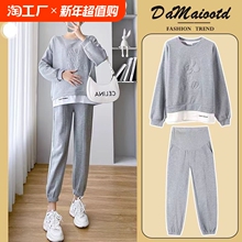 孕妇套装时尚洋气时髦加绒加厚上衣卫衣裤子两件套2024新款春秋冬(129元)