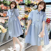 孕妇连衣裙时尚宽松大码A版长款过膝衬衫裙长裙子孕妇装秋装夏装(128元)