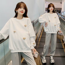 孕妇套装春秋冬2024新款显瘦休闲运动白灰立领长袖卫衣裤子两件套(139元)