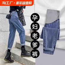 孕妇裤子外穿托腹牛仔裤直筒裤老爹裤加绒加厚孕期不勒早期可调节(53.9元)