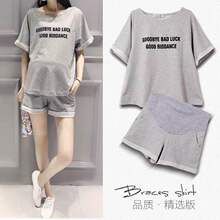 孕妇装夏装套装两件套T恤上衣短袖宽松休闲新款时尚外穿孕妇套装(33.9元)