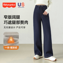 费雪孕妇牛仔阔腿裤2024新款秋冬外穿加绒大码小个子无托腹拖地裤(199元)