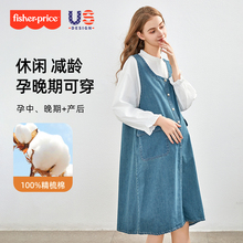 费雪孕妇装春装连衣裙2025新款衬衣牛仔背带裙子春秋季两件套装女(189元)