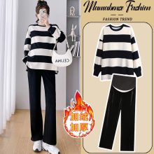 孕妇套装穿搭攻略条纹针织保暖中长款毛衣裤子两件套2024新款秋冬(168元)