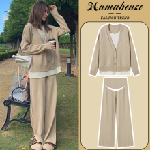 孕妇套装时尚洋气时髦卡其色针织宽松遮肚毛衣两件套2024新款秋冬(139元)