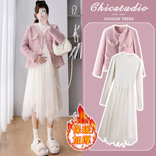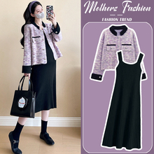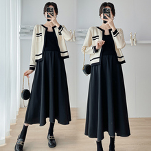 孕妇连衣裙套装春秋2024新款小香风外套针织打底裙气质时髦两件套(69元)