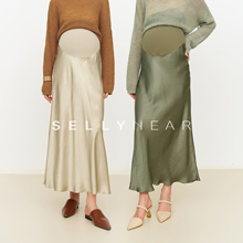 SELLYNEAR孕妇醋酸半身裙秋冬装新款时尚高级感缎面斜裁托腹半裙(429元)