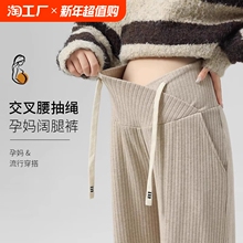 孕妇裤子2024新款外穿秋冬大码休闲低腰秋季阔腿裤交叉抽绳孕妈(51.7元)